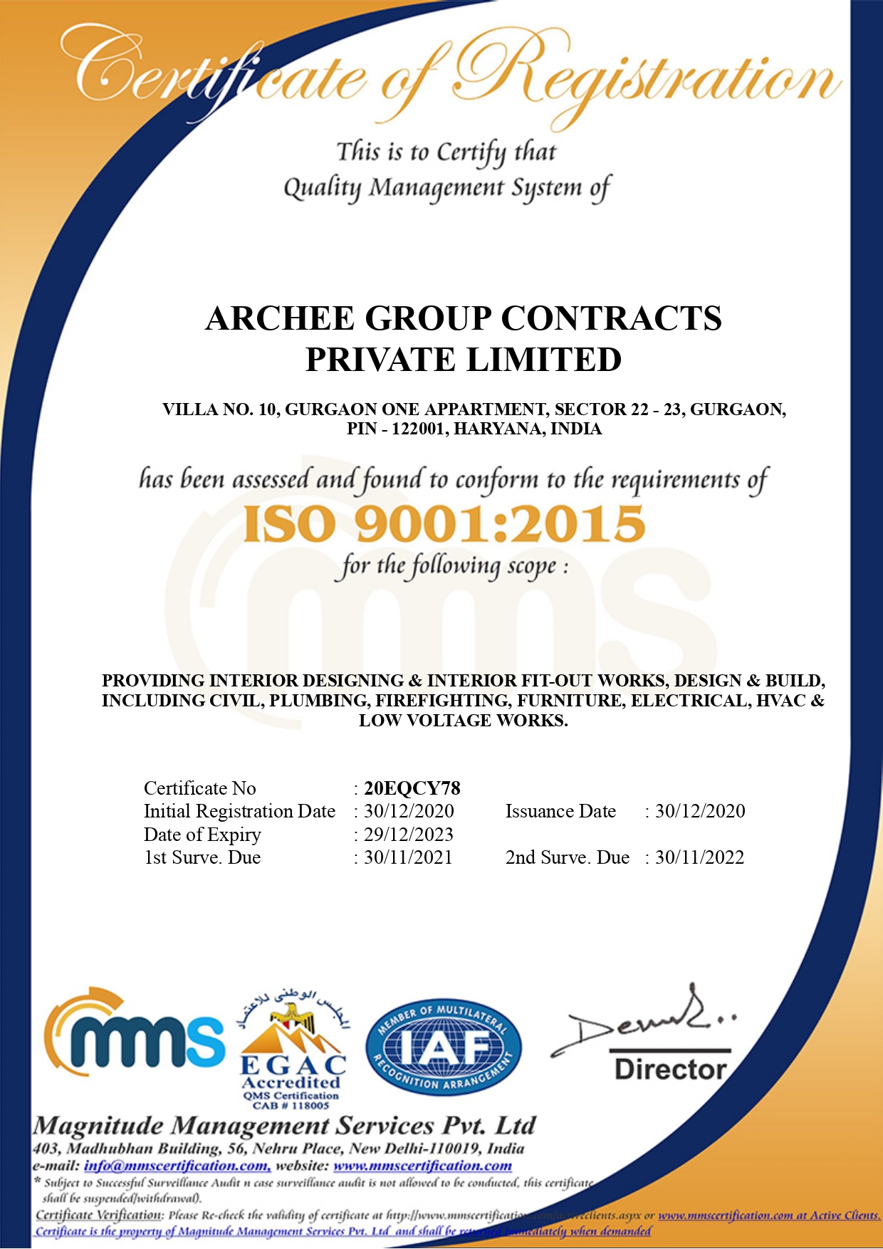 At Archee Group, exquisite ideas are transformed into cost effective quality aesthetics to blend pleasant surroundings into harmonious interiors. Appreciation of Archee Group is abundantly reflected in the market by acceptance of its work. Our tailor made services as under in this domain have satisfied a large number of clients, right from corporate houses to institutes.